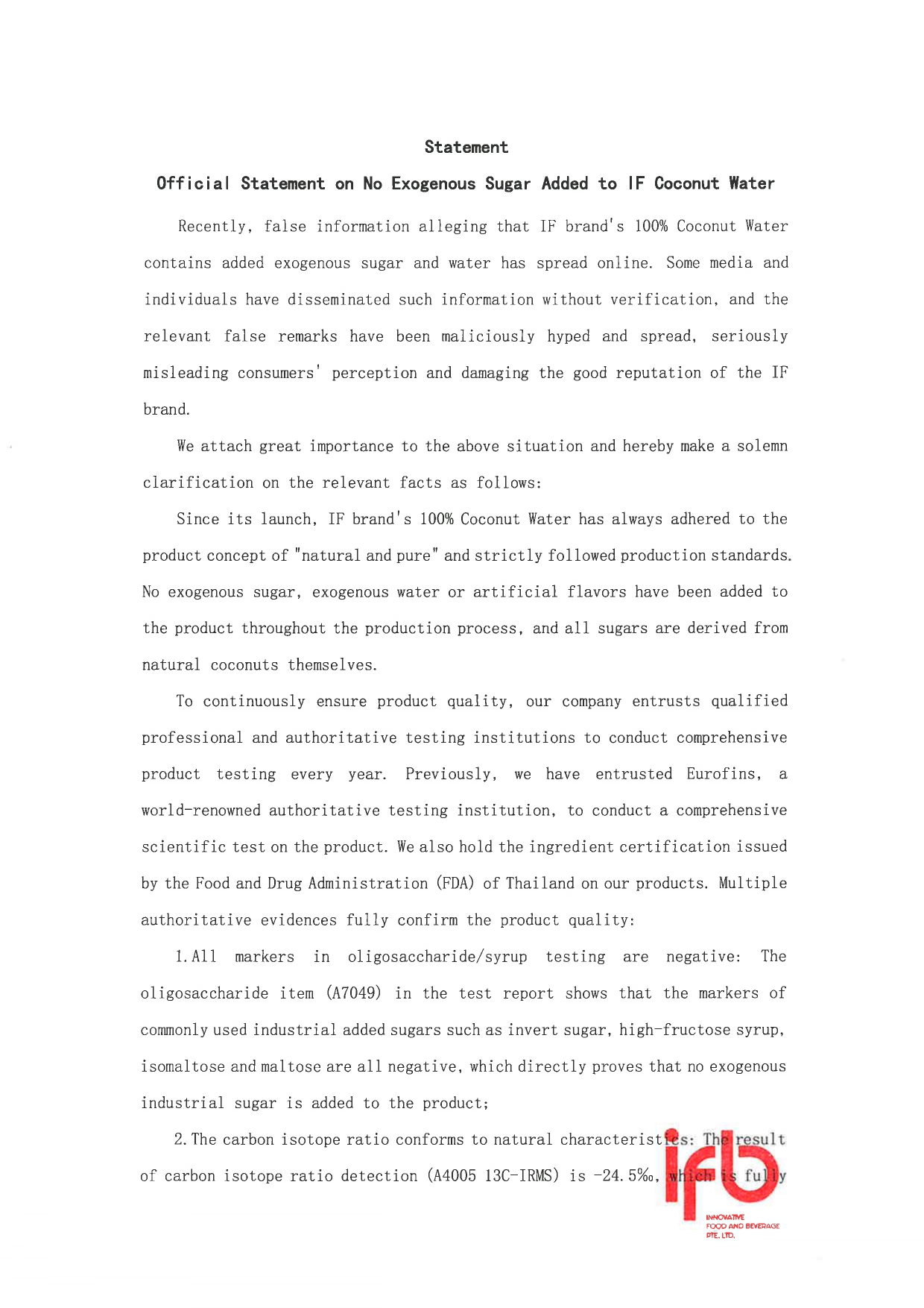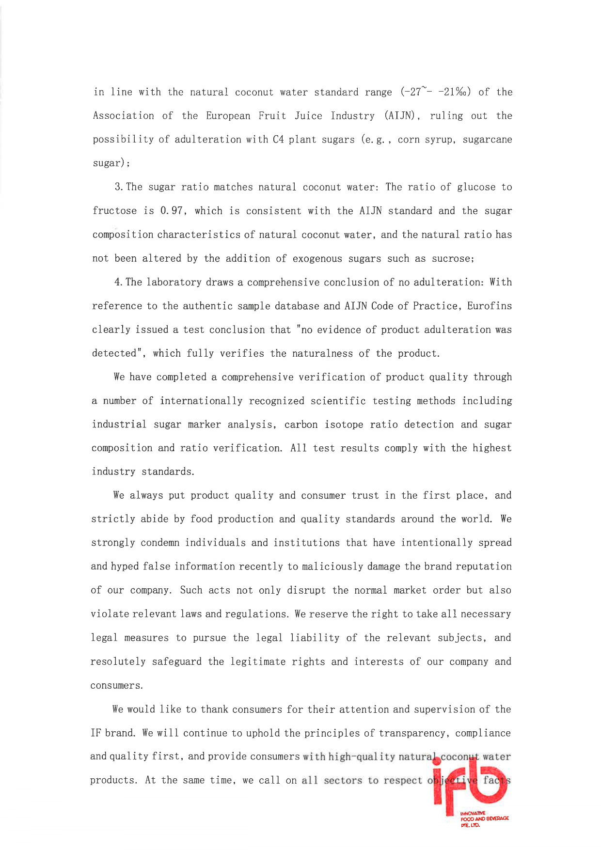 We remain firmly committed to product integrity, transparency, and the highest global food safety standards.